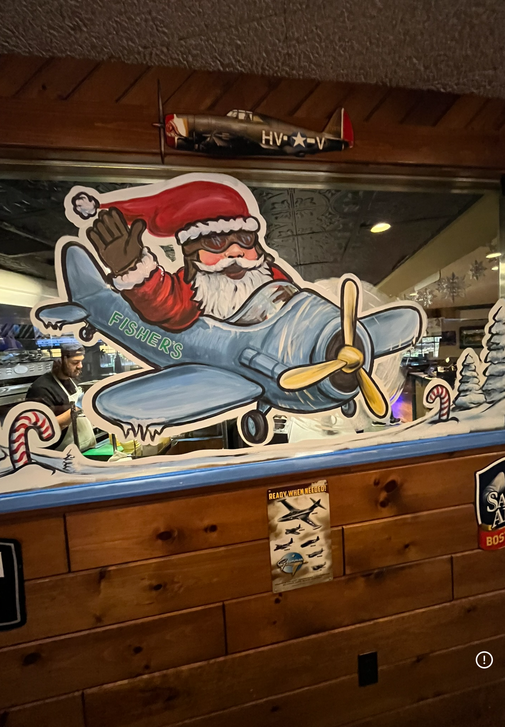 Fisher’s Pub in Middleboro Ma, Christmas window art at the bar