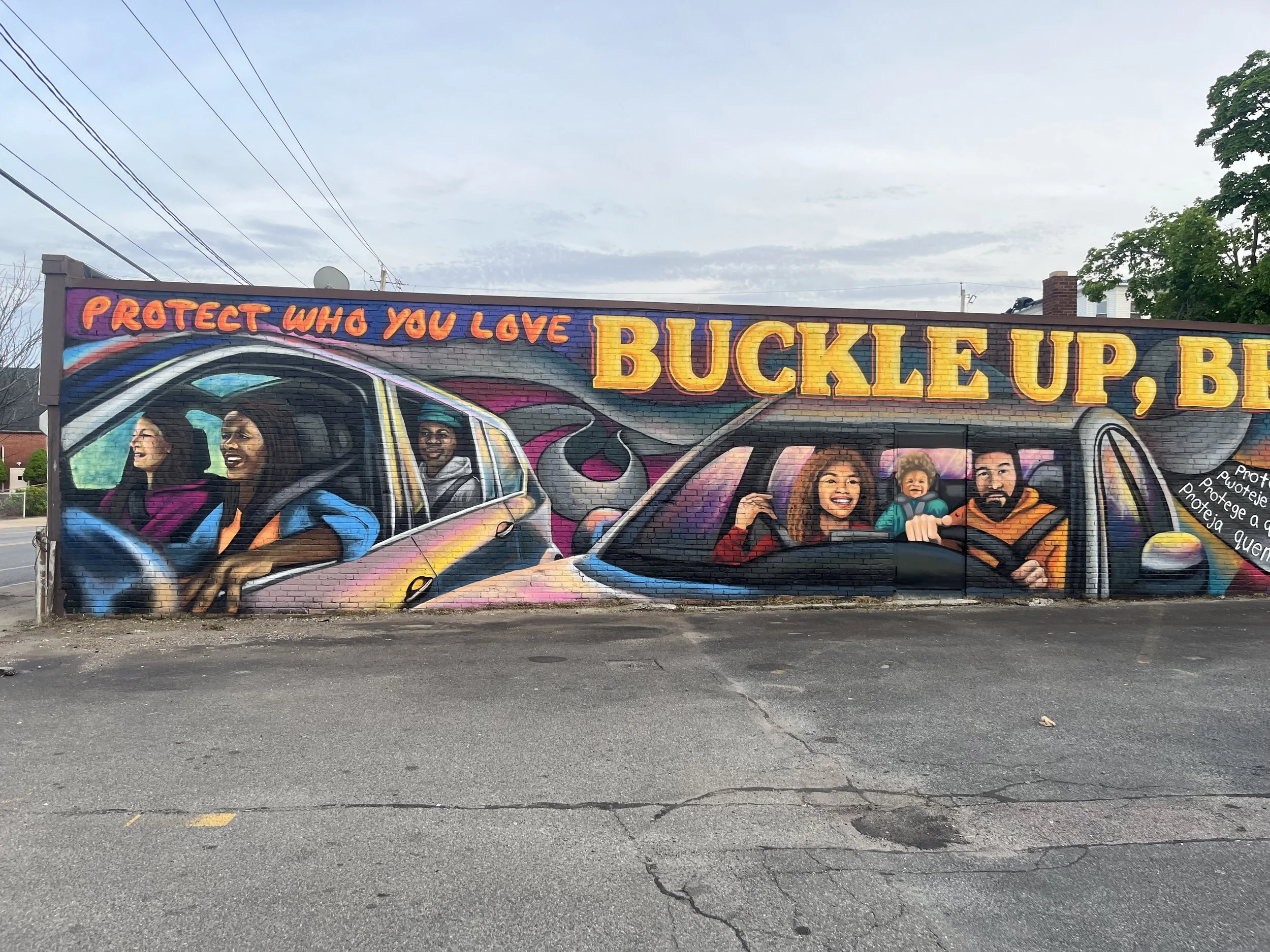 Buckle up Brockton! This is my largest mural to date, about two thirds of it is pictured above, check out the rest of the mural and some of the process in the photos below. Huge shout out to MassDOT and 24hr Power for making this possible.